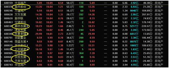 第二沉点是什么是周边的地产商。一共17家涨停,或有屯地,或有政策搀扶。出格是国有参股的地产。像城建,成长,华夏幸福等。